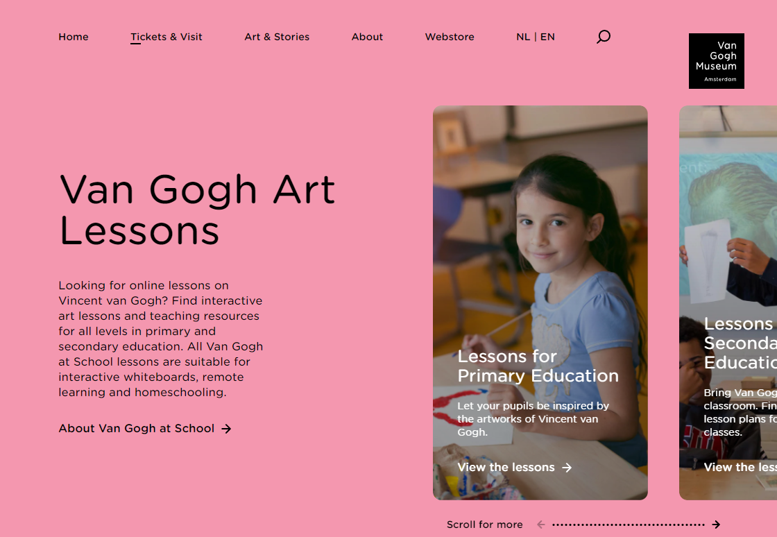 Looking for online lessons on Vincent van Gogh? Find interactive art lessons and teaching resources for all levels in primary and secondary education. All Van Gogh at School lessons are suitable for interactive whiteboards, remote learning and homeschooling.
